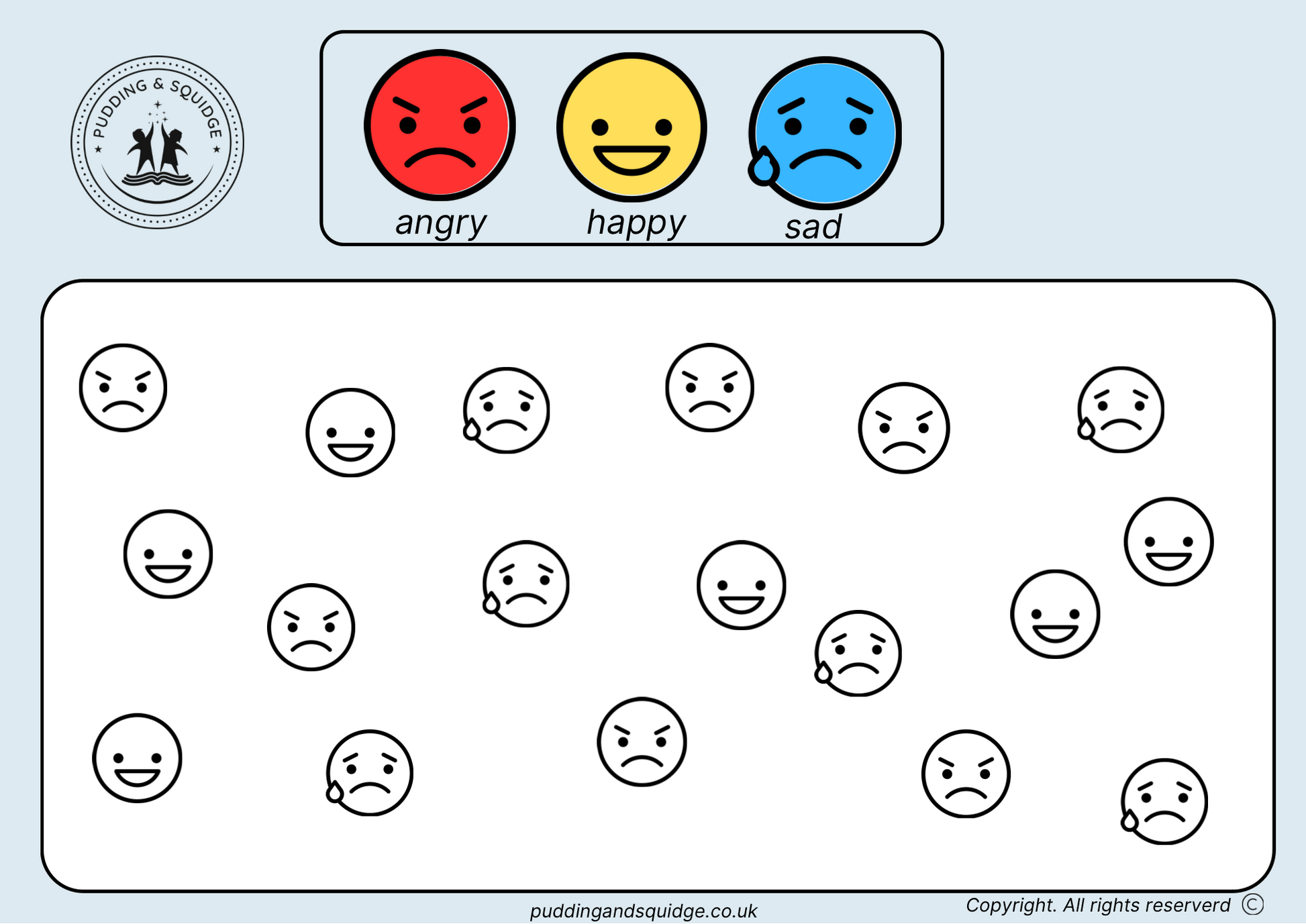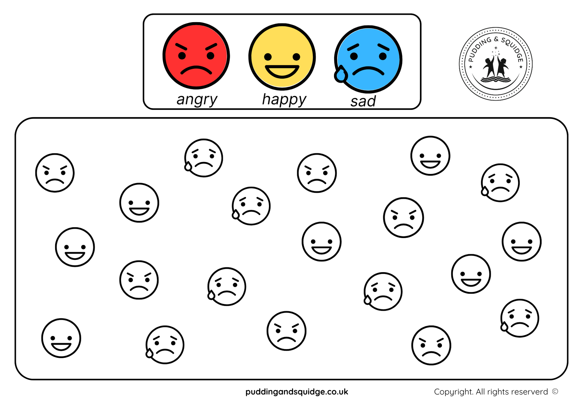 Let’s talk about our emotions in this fun game designed to help kids understand feelings. Simply ask them to colour in the happy, sad and angry faces the correct colour and have a chat about feelings as you go. Easy!