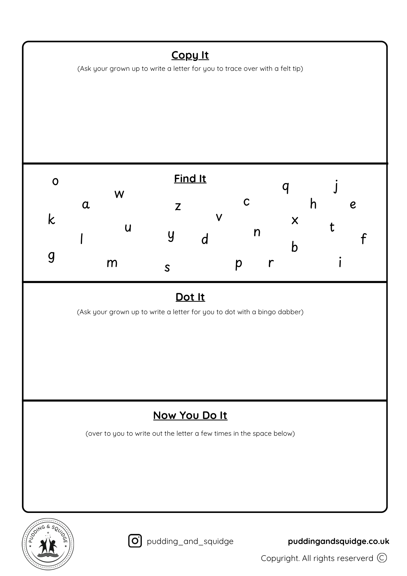 Our newest digital download! Designed to help with letter formation. Inspired by Pudding herself. Just pick a letter, fill out the worksheet with it and hand it over for them to do.